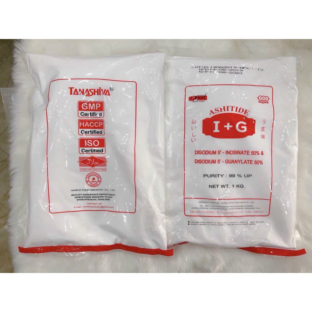 I+G là một loại phụ gia thực phẩm cùng họ với bột ngọt, giúp làm tăng thêm mùi vị của thực phẩm . Thành phần gồm Discodium 5’ – Inosinate (IMP) (631) và Discodium 5’ – Guanylate (GMP) (627) , I+G đem lại vị ngọt hơn bột ngọt thông thường từ 100 -200 lần được dùng để tăng thêm mùi vị cho thức ăn, I+G còn có công dụng đặc biệt là ngừa độ quá mặn hay quá ngọt, khử những vị không cần thiết, I+G hòa tan hoàn toàn trong nước, tạo được sự cảm nhận dai khi gặp những loại thức ăn lỏng.