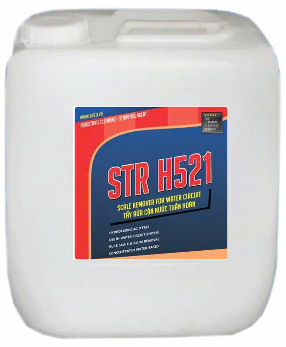 Pha loãng STR H521 với nước ở nồng độ 10% - 20% hoặc cao hơn tuỳ theo độ dày của lớp cặn bám. Đổ dung dịch đã pha vào các đường ống và cho chạy tuần hoàn, nhiệt độ tối đa là 50oC. Sau khi tẩy cặn bám, dung dịch chuyển từ màu hồng sang màu vàng, xả sạch dung dịch màu vàng rồi cho tiếp dung dịch STR H521 vào tẩy sạch đến khi dung dịch sau khi tẩy vẫn là màu hồng. Sau đó, xả lại với nước sạch. Nếu đường ống tiếp xúc với thực phẩm thì phải rửa lại với nước uống được.