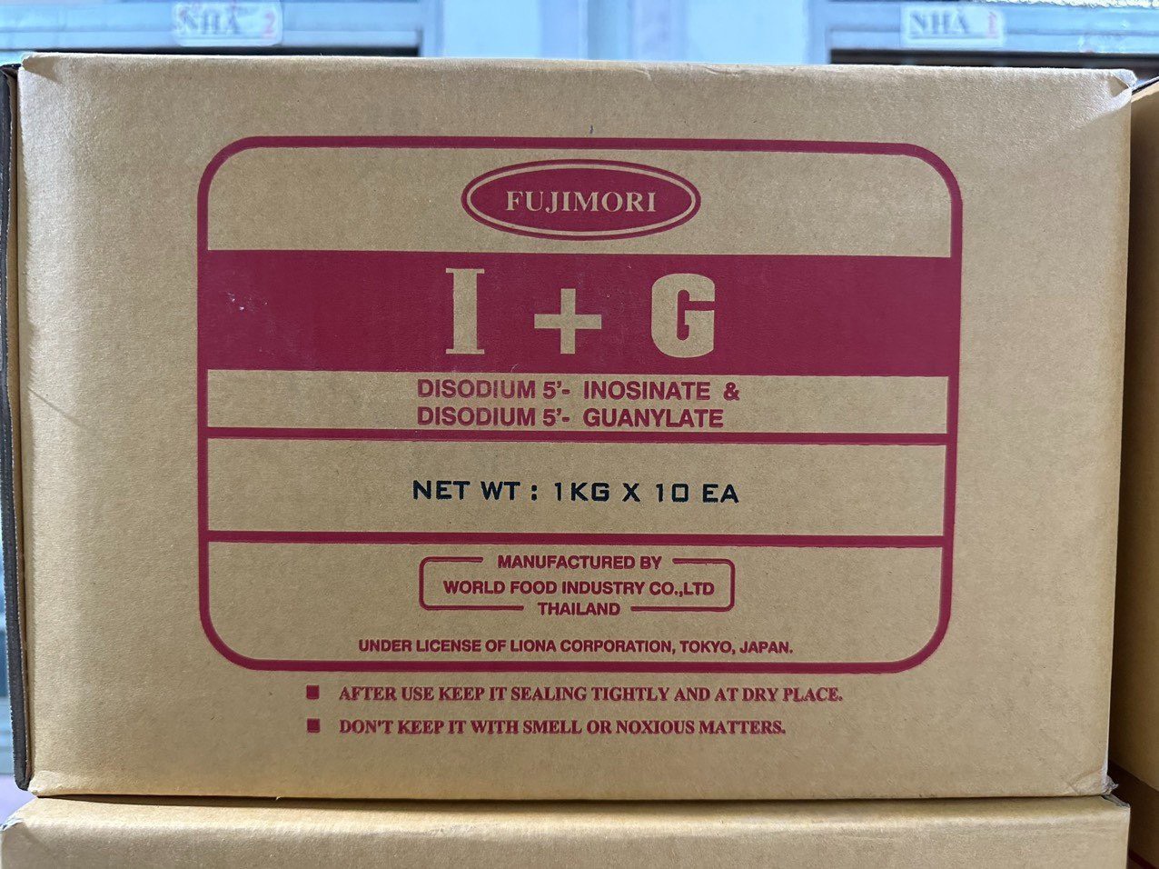 1. I+G là một loại phụ gia thực phẩm cùng họ với bột ngọt, giúp làm tăng thêm mùi vị của thực phẩm. Thành phần gồm Discodium 5’ – Inosinate (IMP) (631) và Discodium 5’ – Guanylate (GMP) (627) , I+G đem lại vị ngọt hơn bột ngọt thông thường từ 100 -200 lần được dùng để tăng thêm mùi vị cho thức ăn, I+G còn có công dụng đặc biệt là ngừa độ quá mặn hay quá ngọt, khử những vị không cần thiết, I+G hòa tan hoàn toàn trong nước, tạo được sự cảm nhận dai khi gặp những loại thức ăn lỏng.
