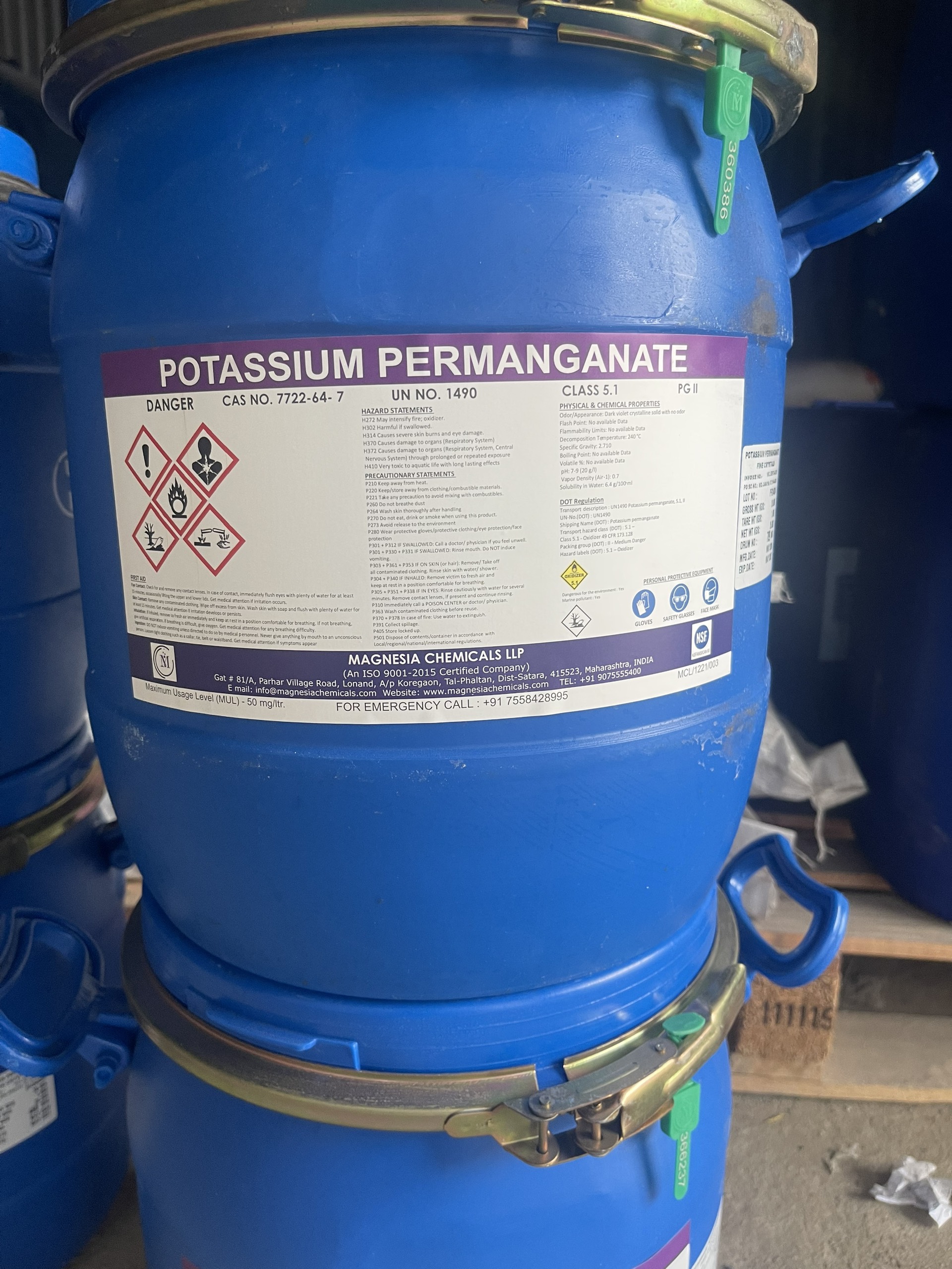 - Trong quá trình xử lý nước quy mô lớn, thuốc tím thường được bổ sung ngay từ đầu nguồn nước thô. Kali pemanganat luôn được thêm vào trước khi lọc.